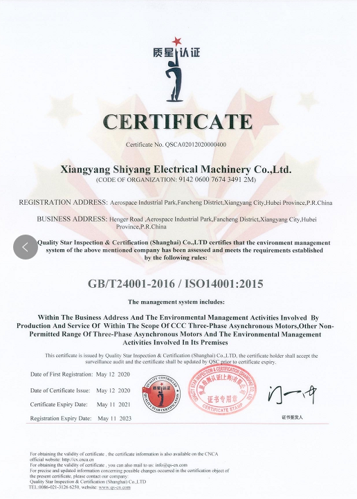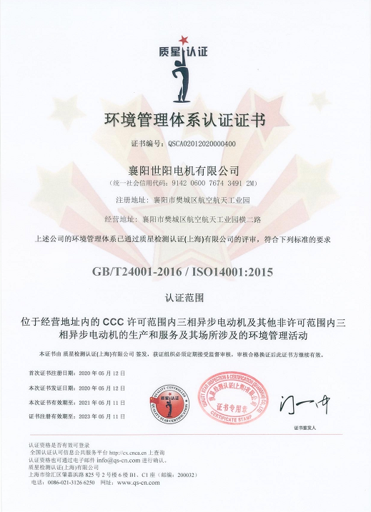 環(huán)境管理體系認證證書